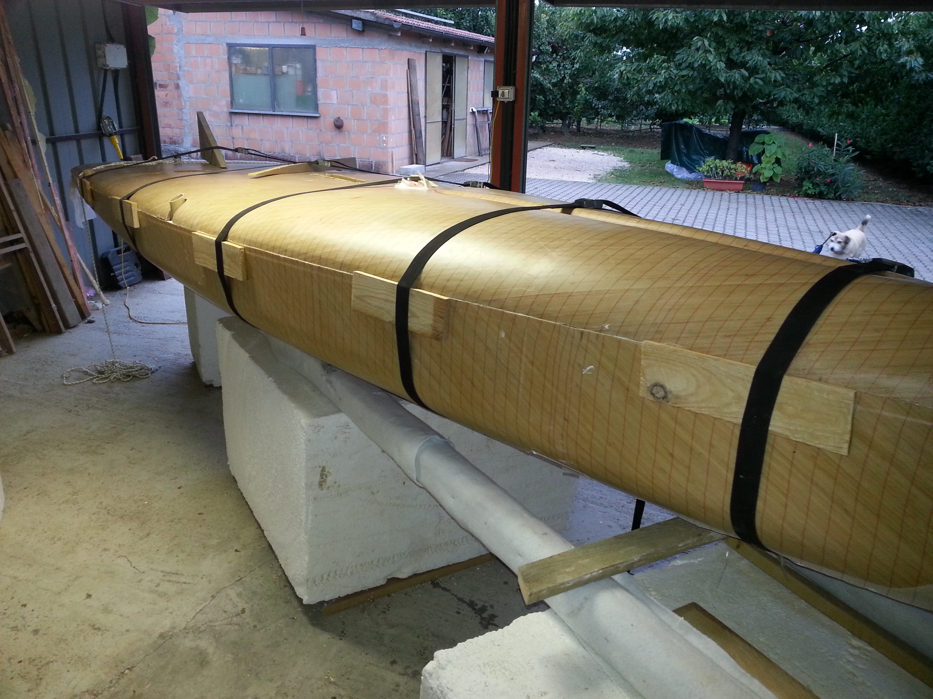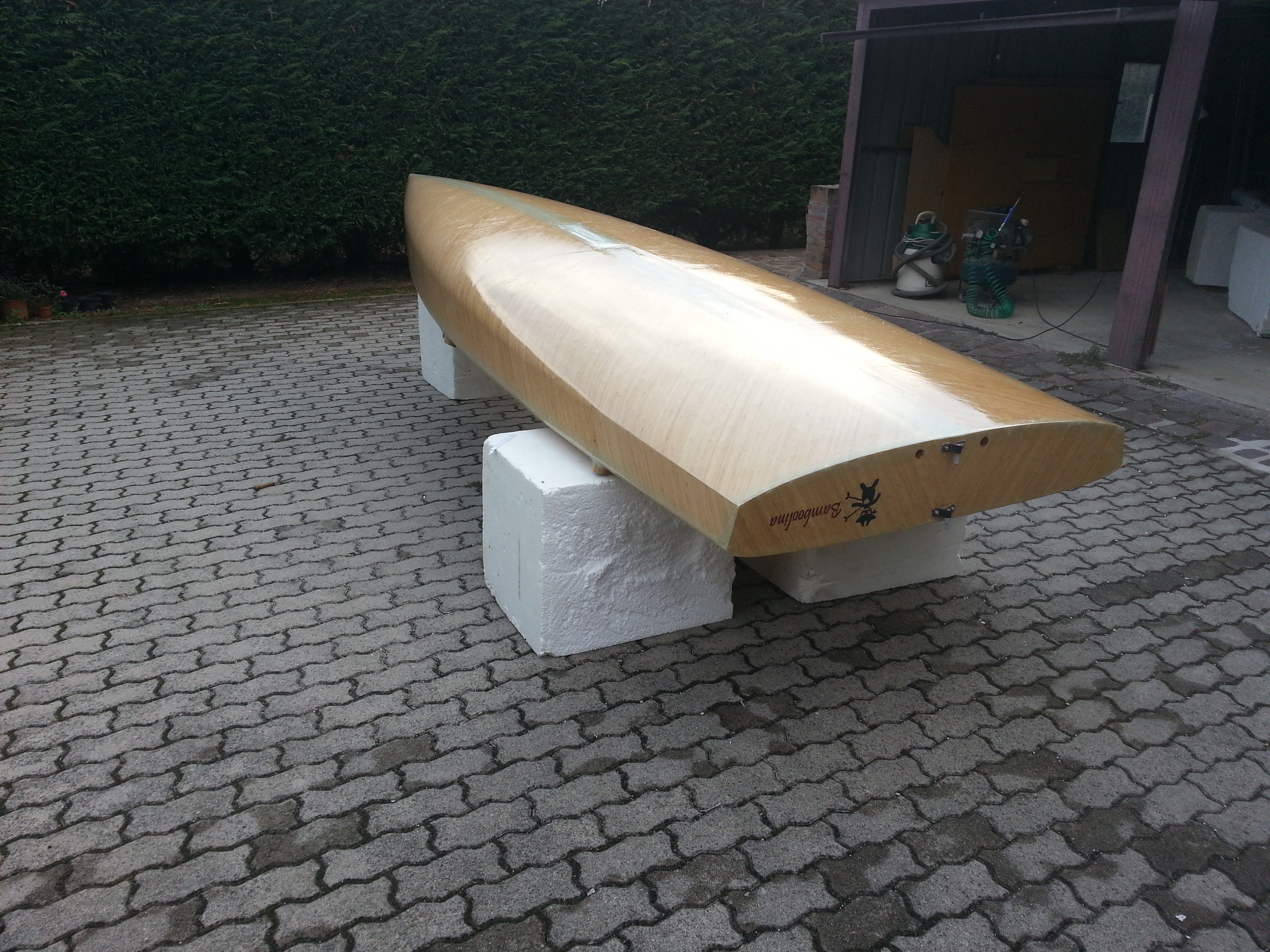 We had built Bamboolina using MDF and foam moulds, vacuum bag lamination with bamboo fiber, glass fiber and epoxy resin…and the greatest passion and details accuracy that we could give to this lightest and unique bamboo skiff!!